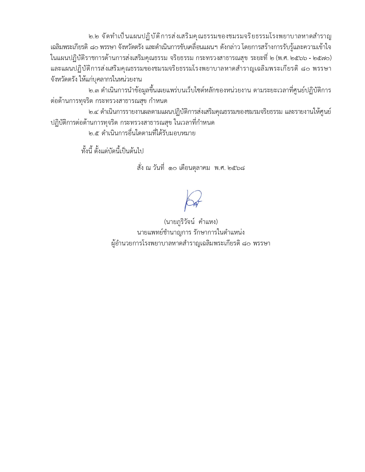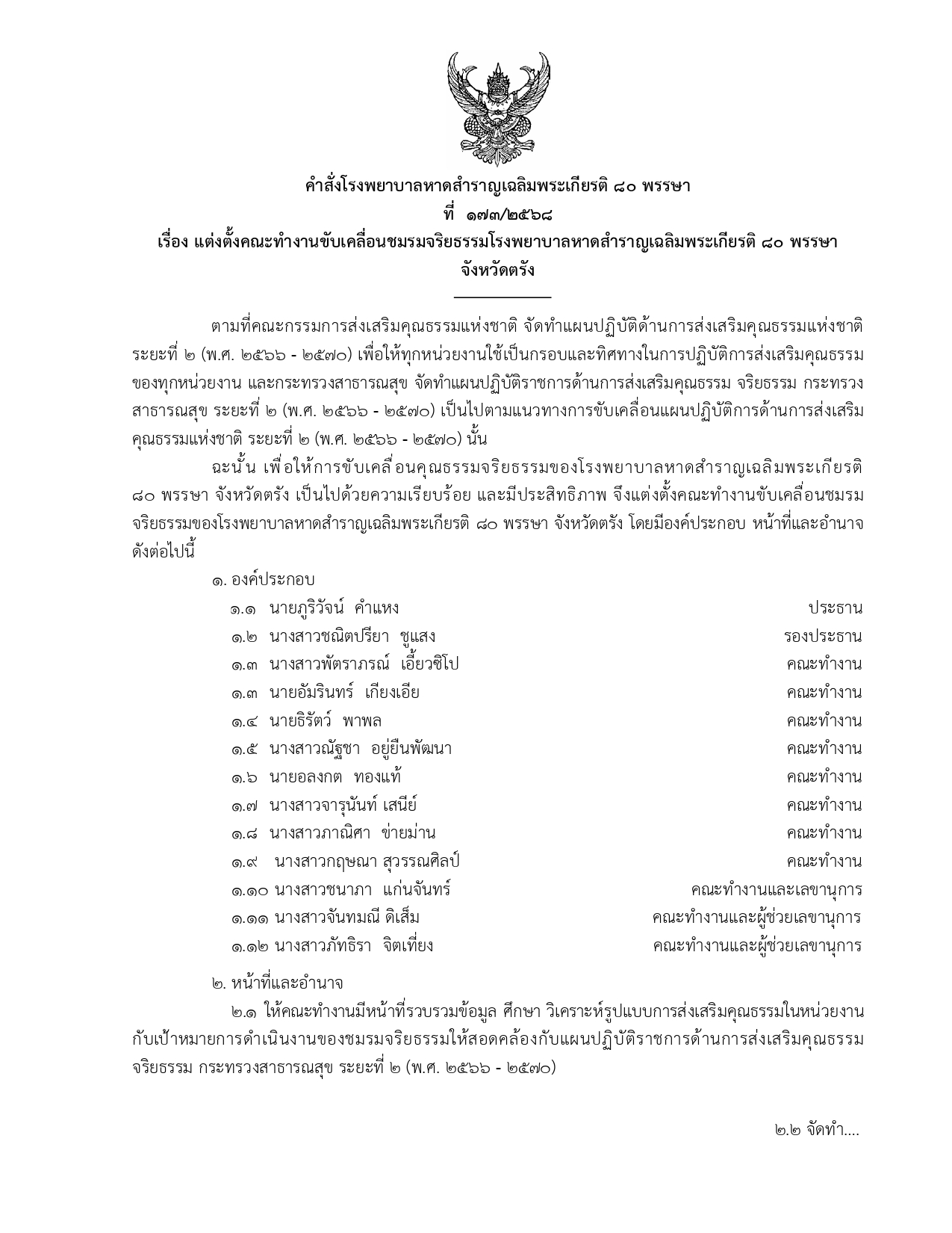 คำสั่งแต่งตั้งคณะทำงานขับเคลื่อนชมรมจริยธรรมโรงพยาบาลหาดสำราญเฉลิมพระเกียรติ ๘๐ พรรษา