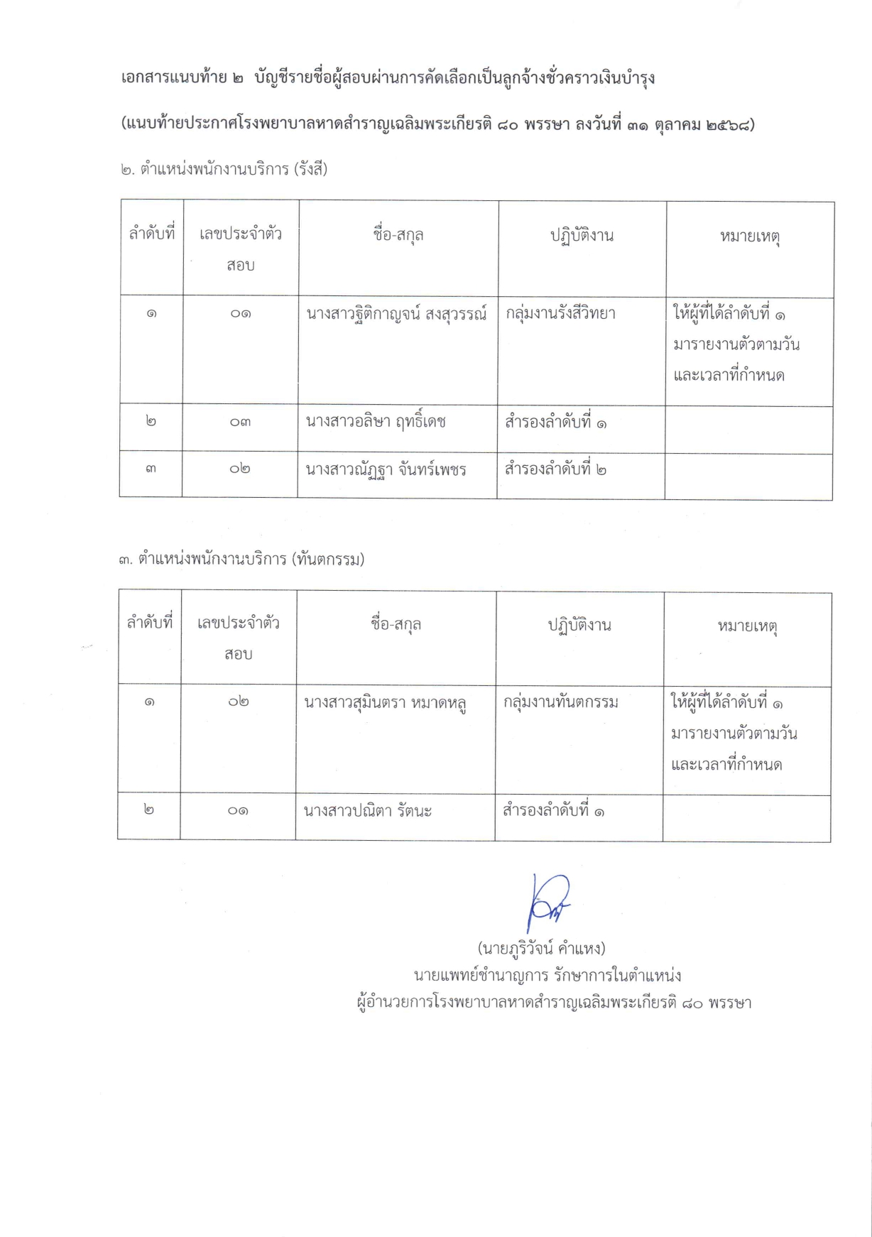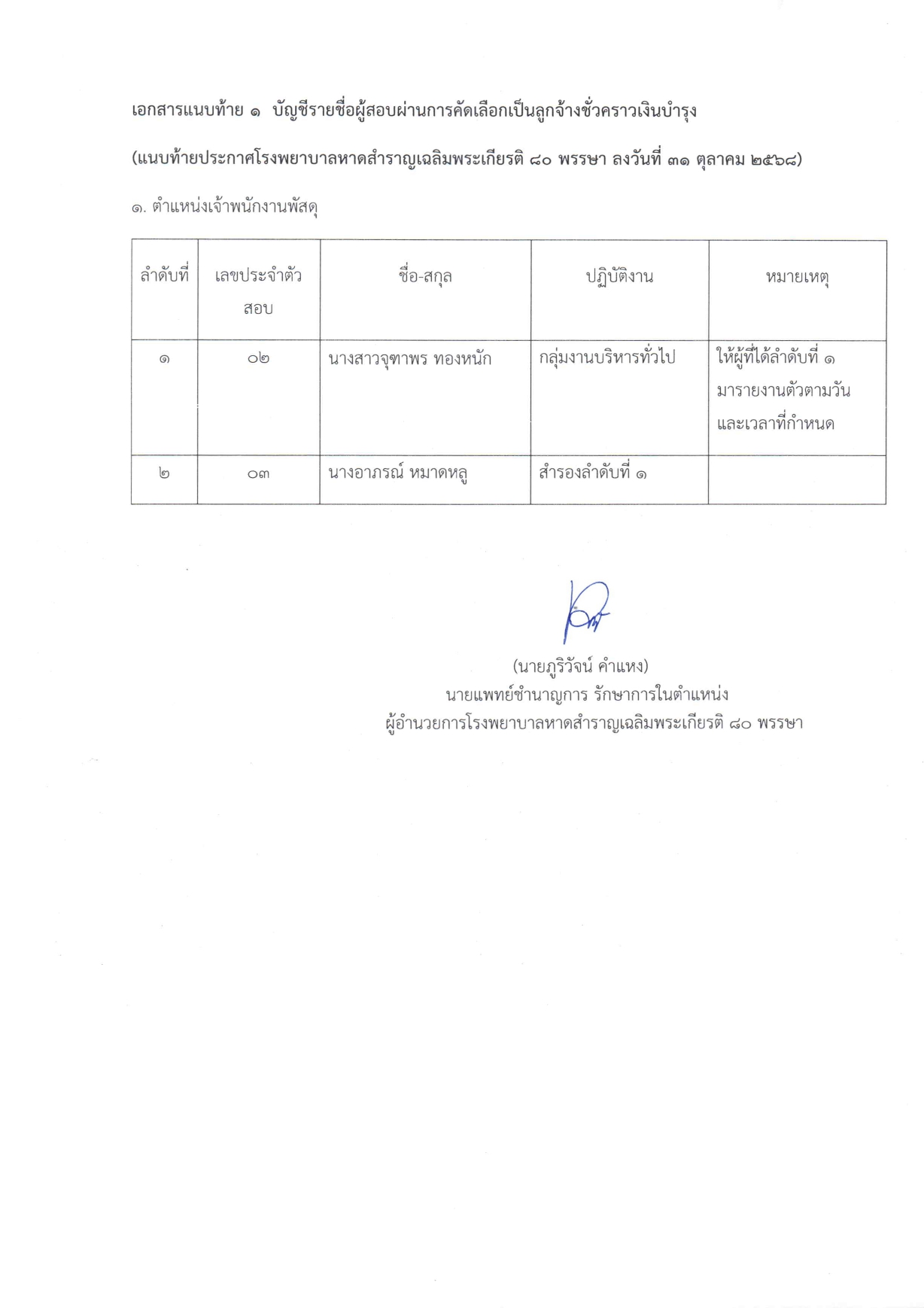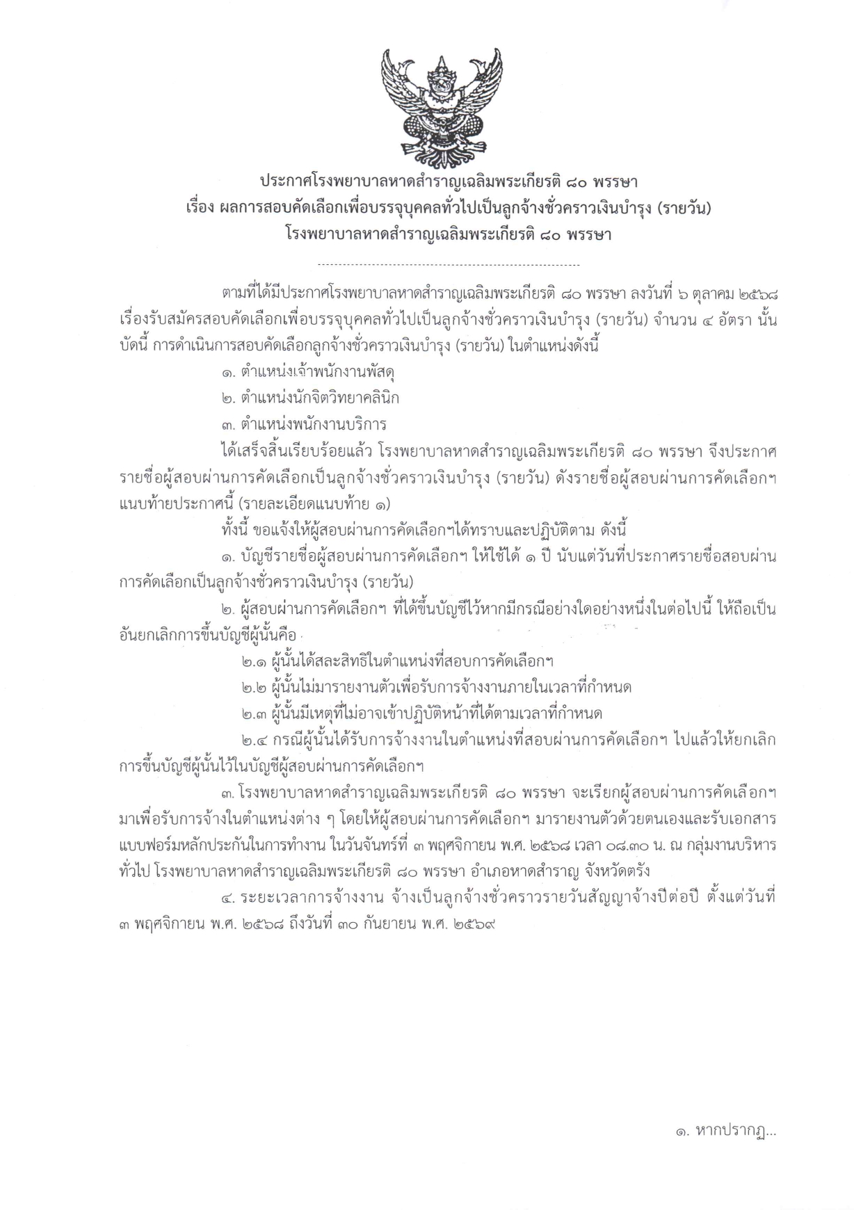 22 OCT ประกาศรายชื่อผู้มีสิทธิ์เข้าสอบคัดเลือกเพื่อบรรจุบุคคลทั่วไปเป็นลูกจ้างชั่วคราวเงินบำรุง(รายวัน) โรงพยาบาลหาดสำราญฯ ...
